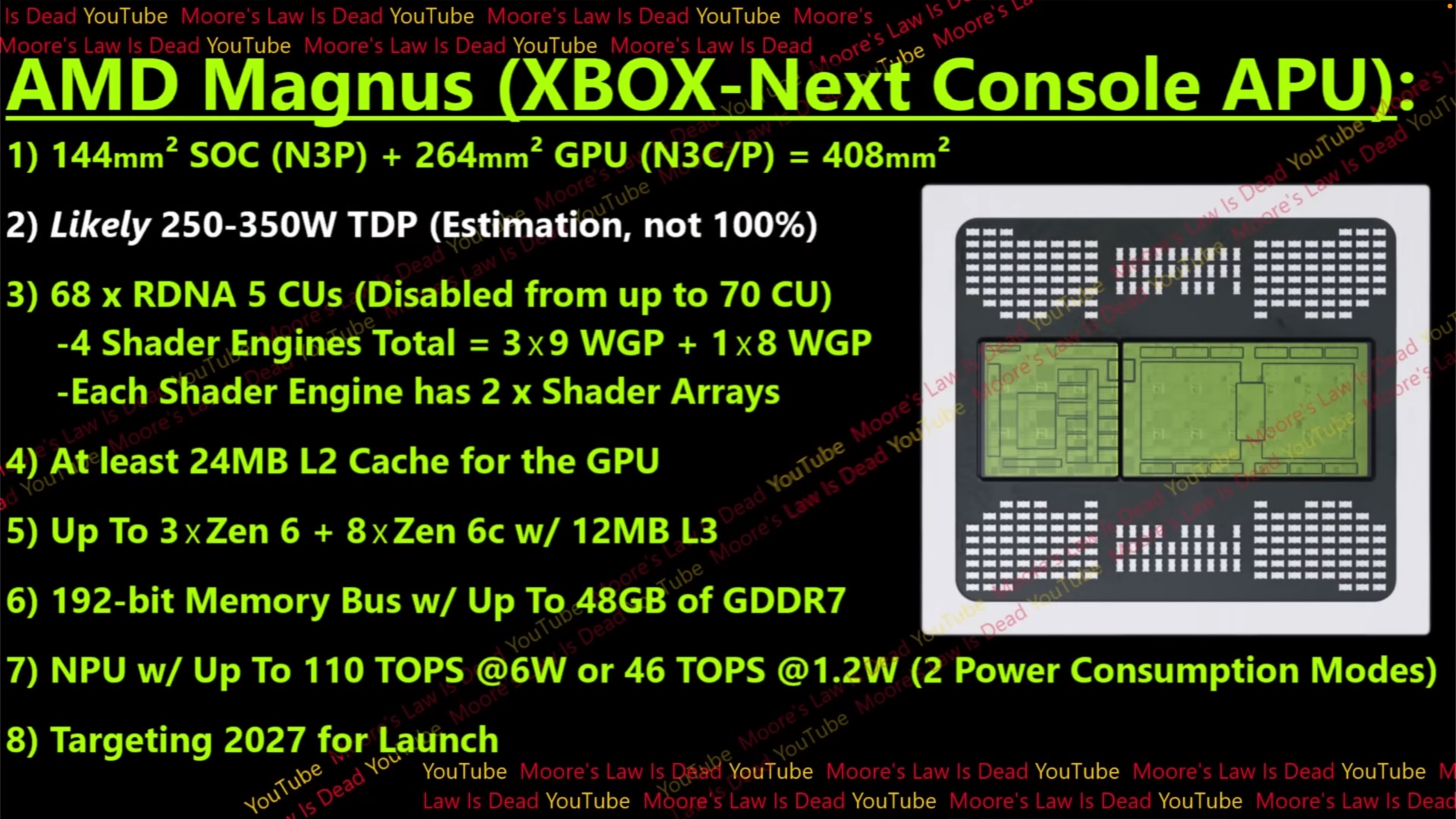 В тот же день ютубер Moore's Law is Dead (MLID) опубликовал видео с предполагаемым изображением процессора AMD Magnus APU, который, по его словам, станет основой следующей консоли Xbox. Инсайдер неоднократно подчёркнул, что Microsoft открыто сообщает партнёрам о запуске в 2027 году.