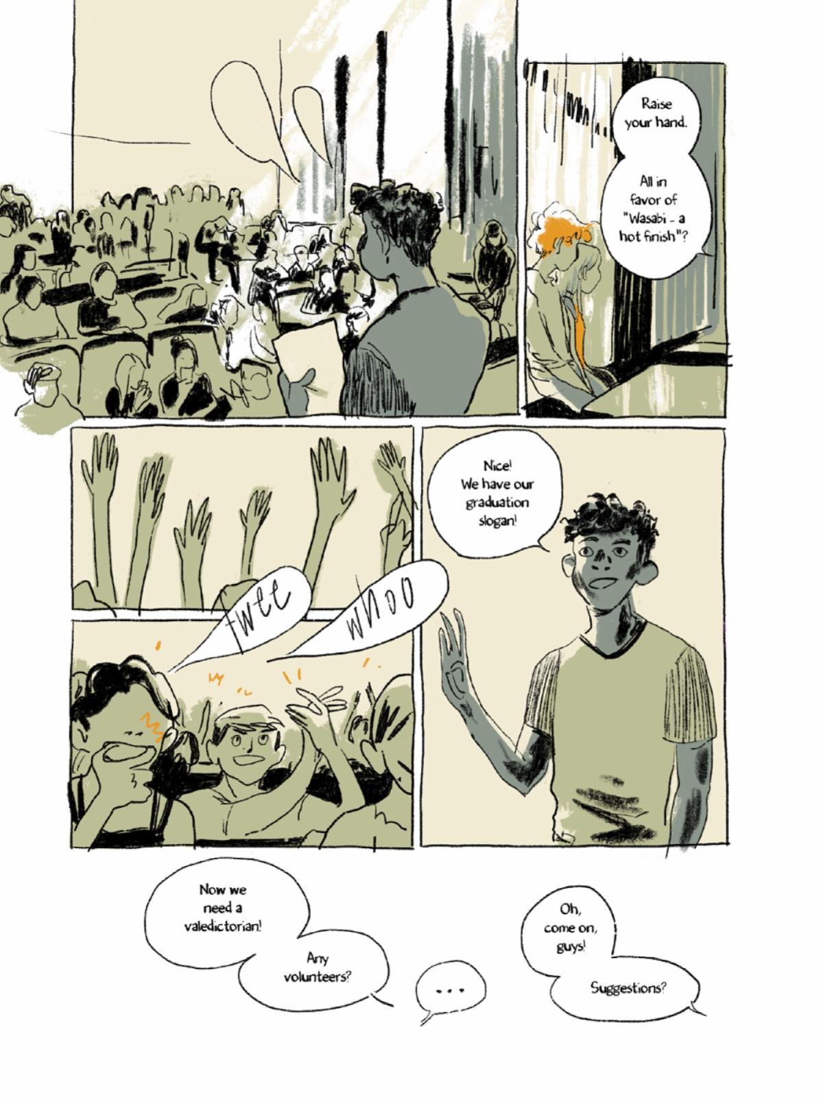 История представляет собой изумительно прорисованное размышление о том, каково смотреть на мир свежим, непредвзятым взглядом, постигая истинный смысл взросления. Плавные линии Фишельс и выразительные персонажи создают глубоко понятную историю о давлении, которое оказывается на молодых людей, вынужденных якобы «всё распланировать» в своей жизни...