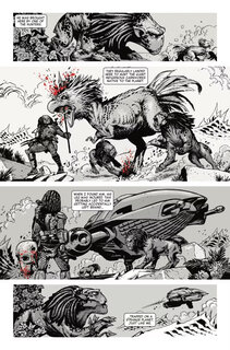 А в новелле сценариста Коди Зиглара (Deadpool) и художника Джибраила Мориссетт-Фана (Glitterbomb) беглый самогонщик сталкивается со смертельной опасностью в глуши — в том числе и с Хищником! Ну а в третьем рассказе Джордан Моррис (The Devastator) и Раффаэле Иенко (Hellverine) пытаются доказать, что яутжа — самые смертоносные существа во вселенной.