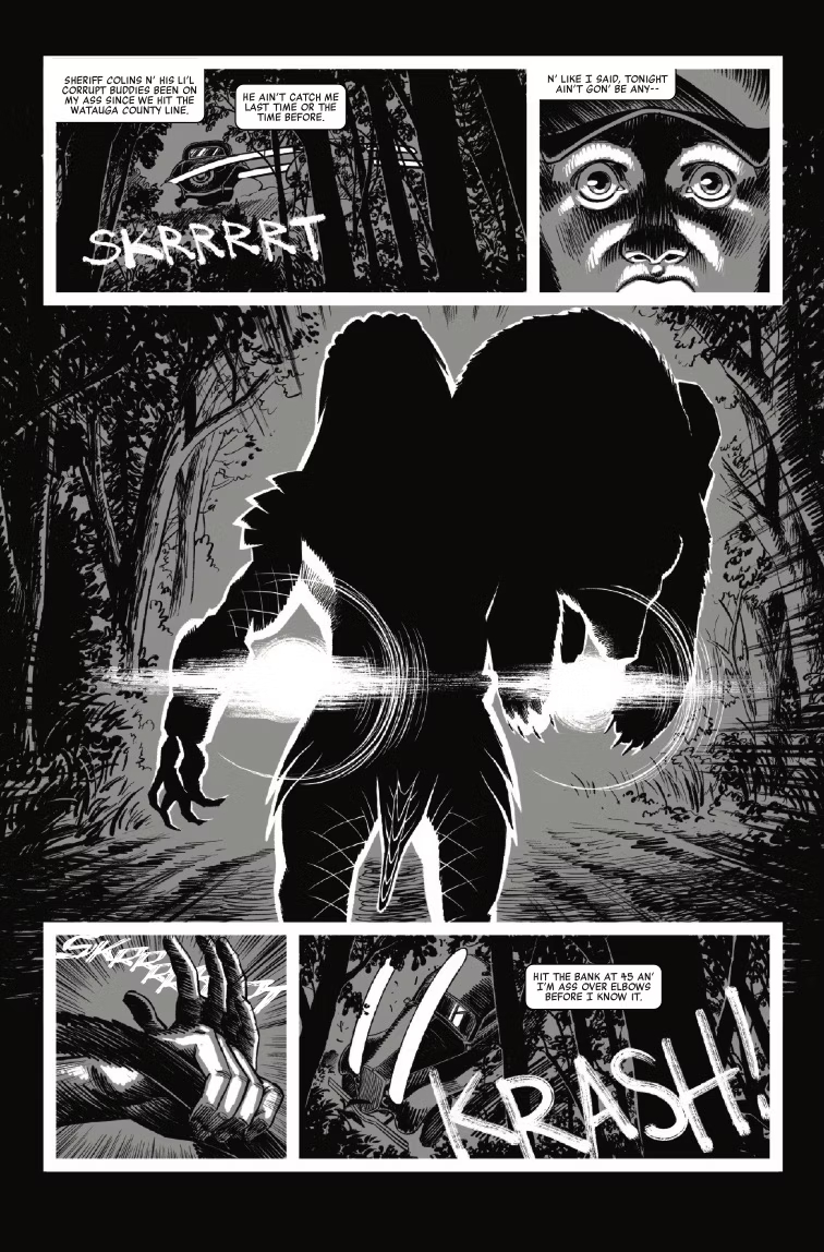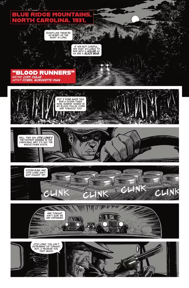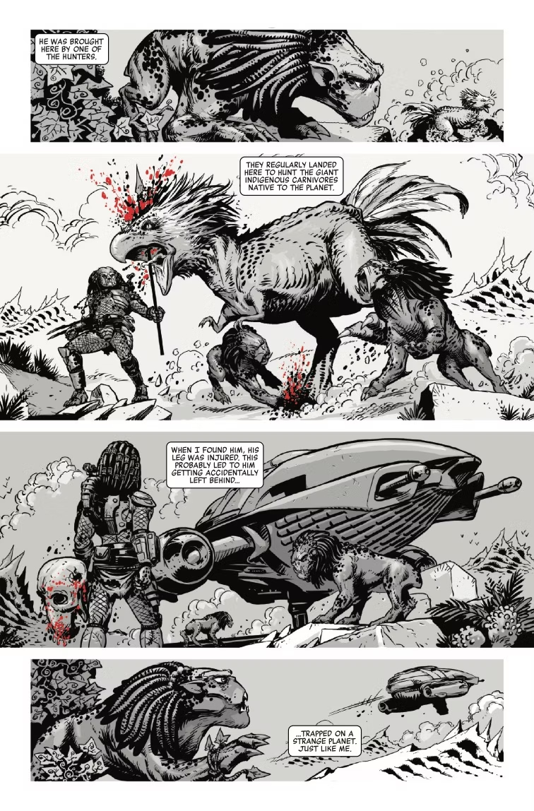А в новелле сценариста Коди Зиглара (Deadpool) и художника Джибраила Мориссетт-Фана (Glitterbomb) беглый самогонщик сталкивается со смертельной опасностью в глуши — в том числе и с Хищником! Ну а в третьем рассказе Джордан Моррис (The Devastator) и Раффаэле Иенко (Hellverine) пытаются доказать, что яутжа — самые смертоносные существа во вселенной.