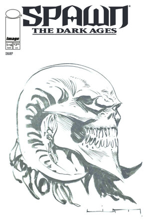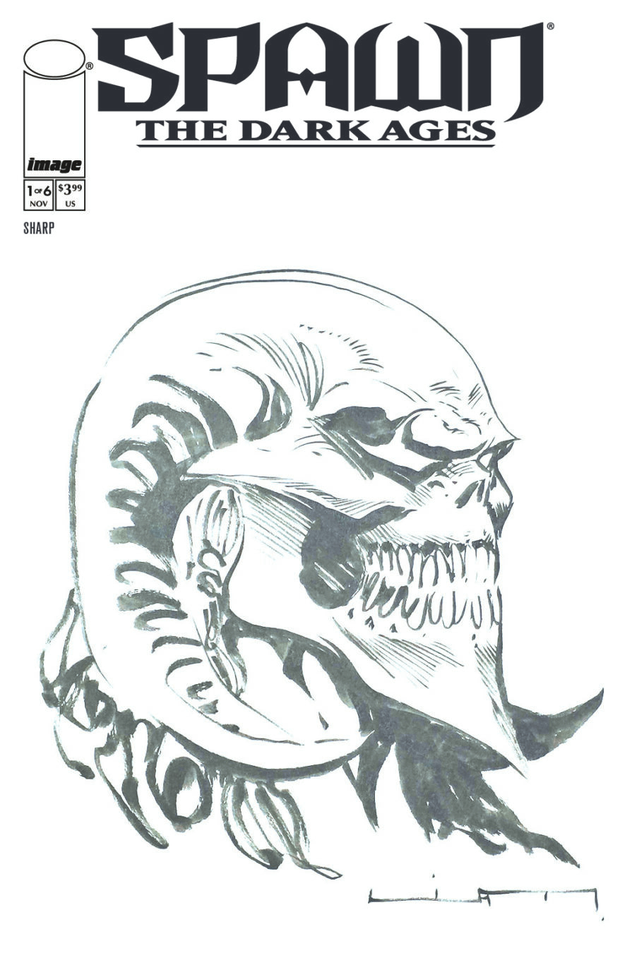 Первый кавер представляет собой банальную дорисовку Спауна Эла Симмонса на рисунок Шарпа. Как видите, Макфарлейн тут внес небольшой вклад. Зато служит эдаким знаком одобрения от него. Второе изображение — оригинальный скетч от Шарпа. Причём он — не единственный от него. Коллекционеры и избранные ритейлеры получат и другие.