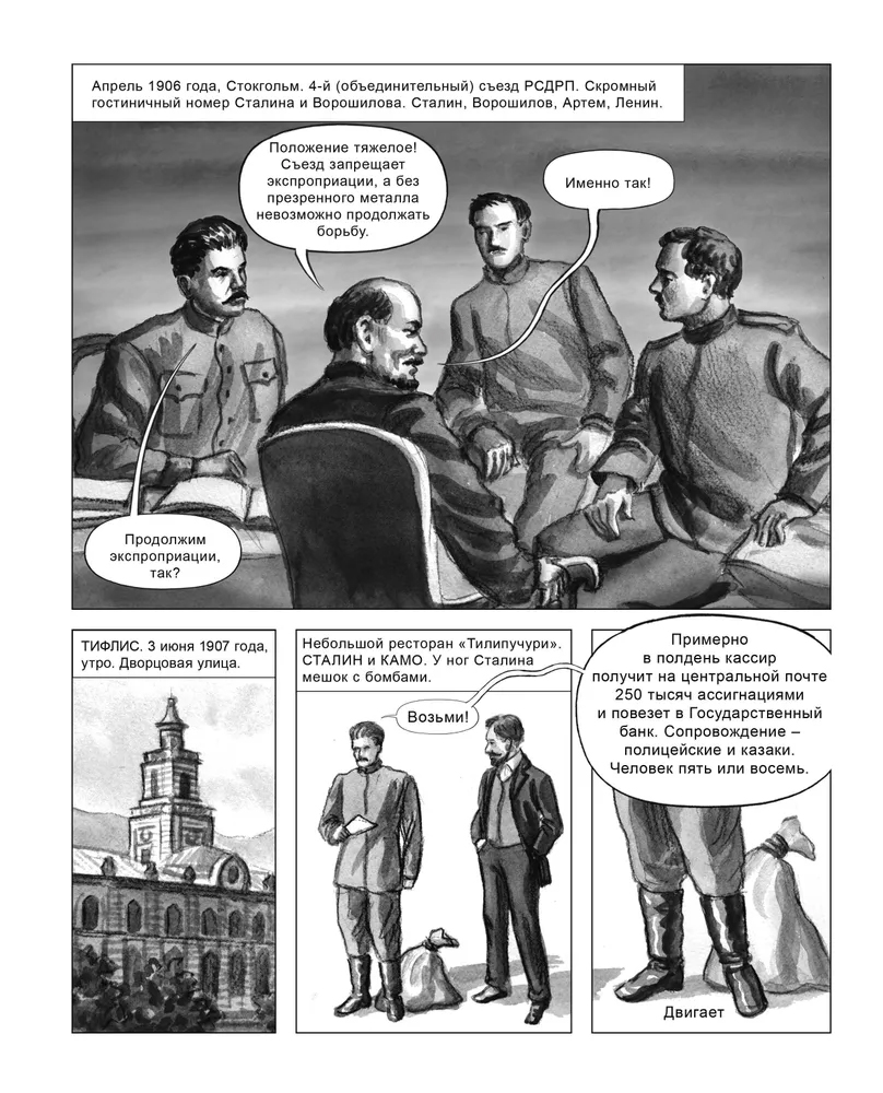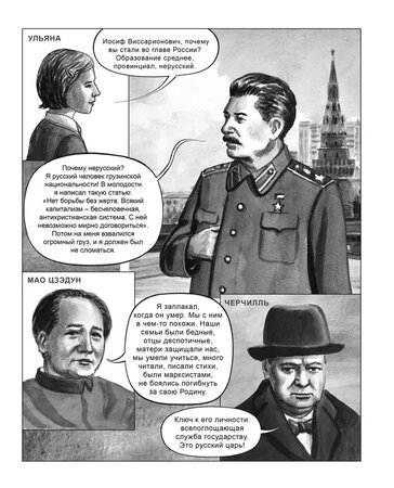 Сталин, конечно, не первых раз появляется в комиксах. Есть, например, французский «Сталин. Биография в комиксах», который охватывает небольшой период его жизни — с начала 1920-х до середины 1930-х годов. И, конечно, одиозное произведение «Смерть Сталина», по которому даже сняли одноимённый фильм. У нас также выходила иная биография — «Сталин. Путь от семинариста до вождя нации. Биография в комиксах».