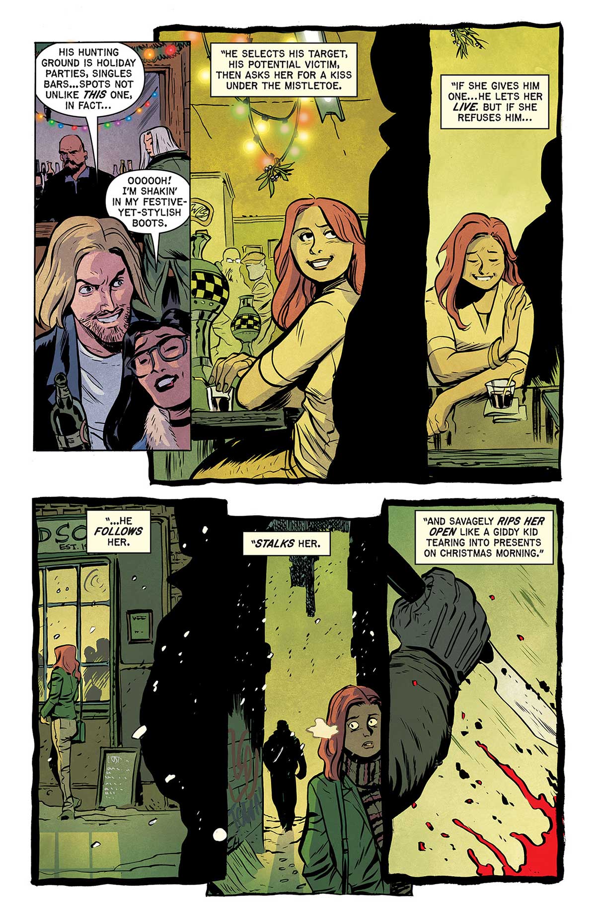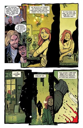 Для разжигания зловещего аппетита издательство показало несколько страниц из истории под названием «Омела», там практически сразу начинает литься кровь и дело принимает нешуточный оборот.