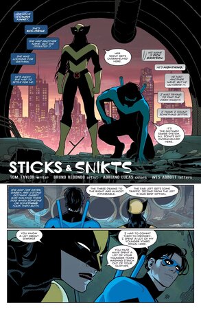 Найтвинг (Дик Грейсон) и Росомаха (Лора Кинни) объединят силы в «Палках и когтях» (Sticks & Snikts). Над этой историей поработали сценарист Том Тейлор (Nightwing, Injustice), художник Бруно Редондо (Injustice 2, Nightwing), колорист Адриано Лукас (Nightwing) и леттерер Уэс Эббот (DC Comics Bombshells).