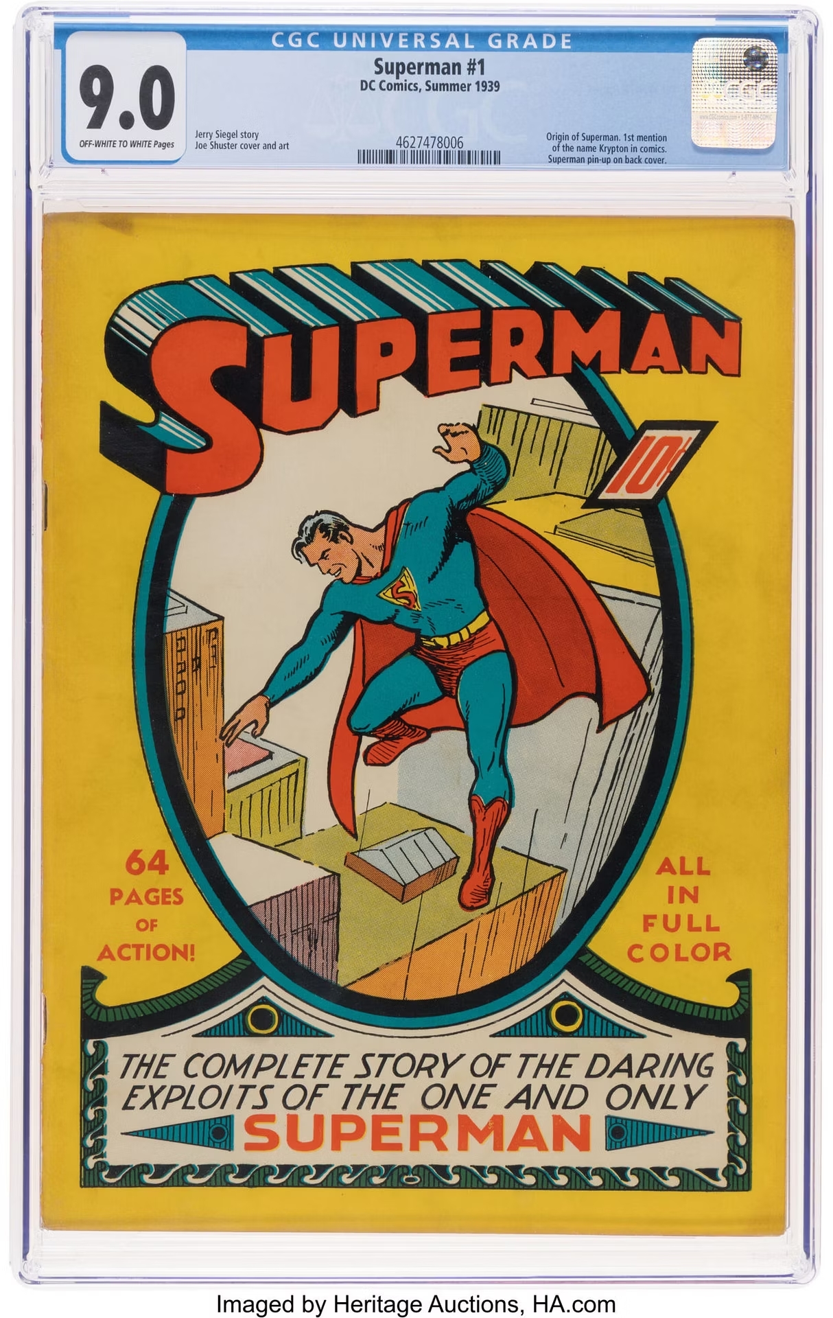 Даже Супермен не выдержал бы техасского солнца, а вот мягкий калифорнийский климат позволил ему с комфортом дотянуть до нынешних дней, практически не пострадав. Хотя сам герой появился раньше, но именно Superman #1 считается святым Граалем среди коллекционеров. С него не только началась первая сольная серия последнего сына Криптона, но и появились приёмные родители героя — Джон и Мэри Кент, созданные Джерри Сигелом и Джо Шустером. Могли ли авторы даже подумать, что когда-нибудь их история будет стоить дороже среднего дома в пригороде?