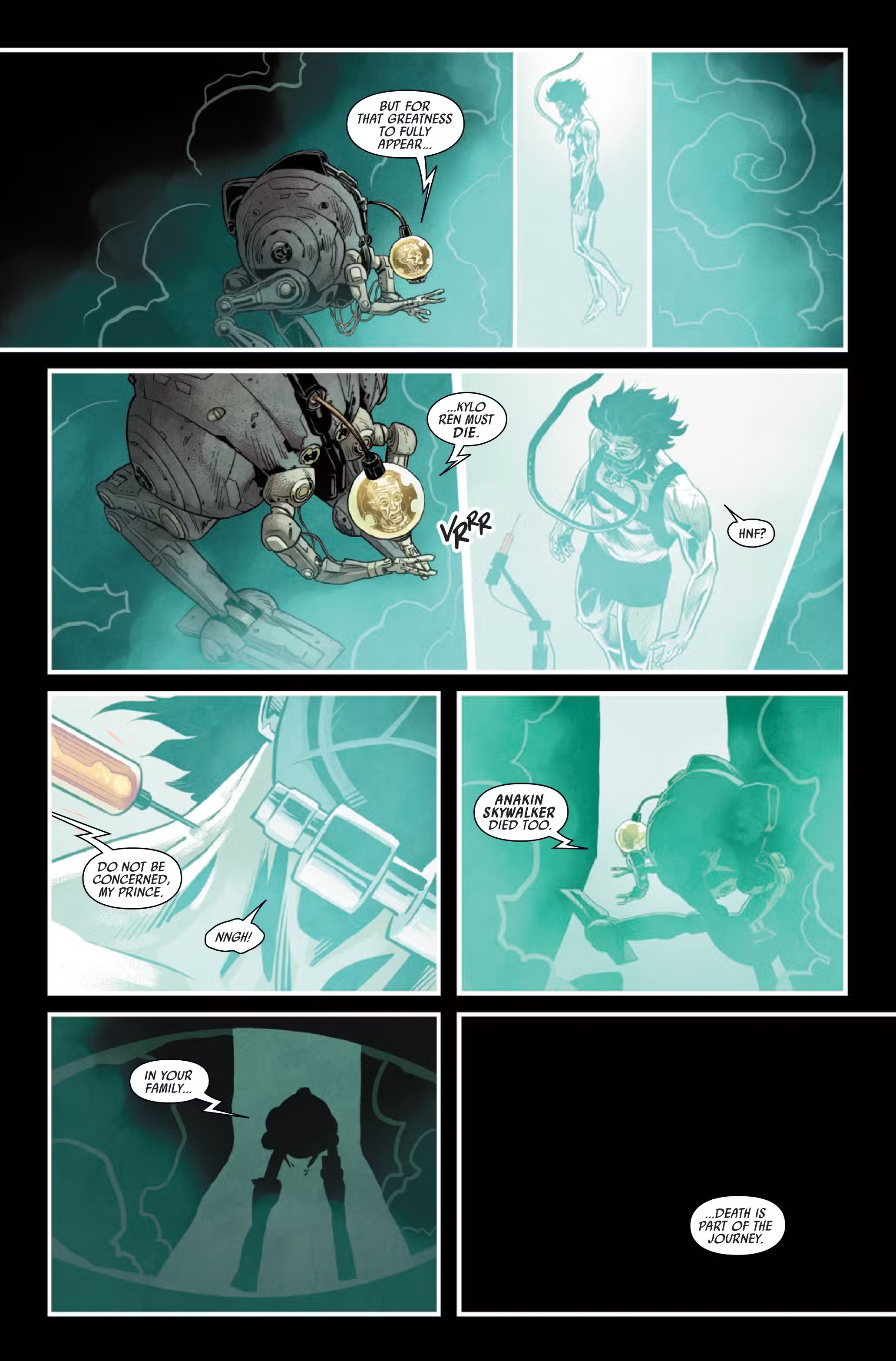 Нам показывают, как Кайло наконец-то понял, что чересчур увлёкся навязчивым желанием во всём походить на Вейдера. Его похитил слуга бывшего Анакина Скайуокера по имени Ванее. Сейчас он практически превратился в голову, засунутую в коробку. Но у этой башки далеко идущие планы на Рена.