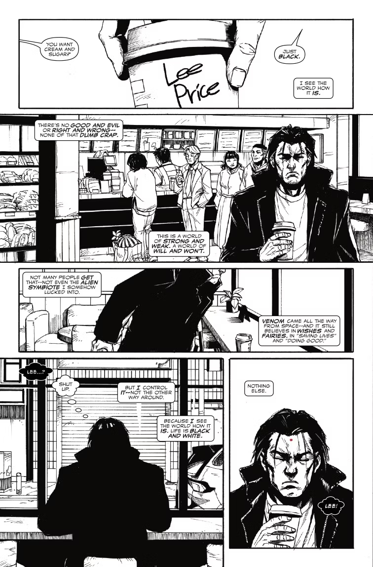 Сценарист Эл Юинг (пишет также All-New Venom и Absolute Green Lantern) и художник Кей Зама (Optimus Prime) рассказывают историю с Ли Прайсом, одним из носителей Венома. И кто-то решил покуситься на его жизнь.