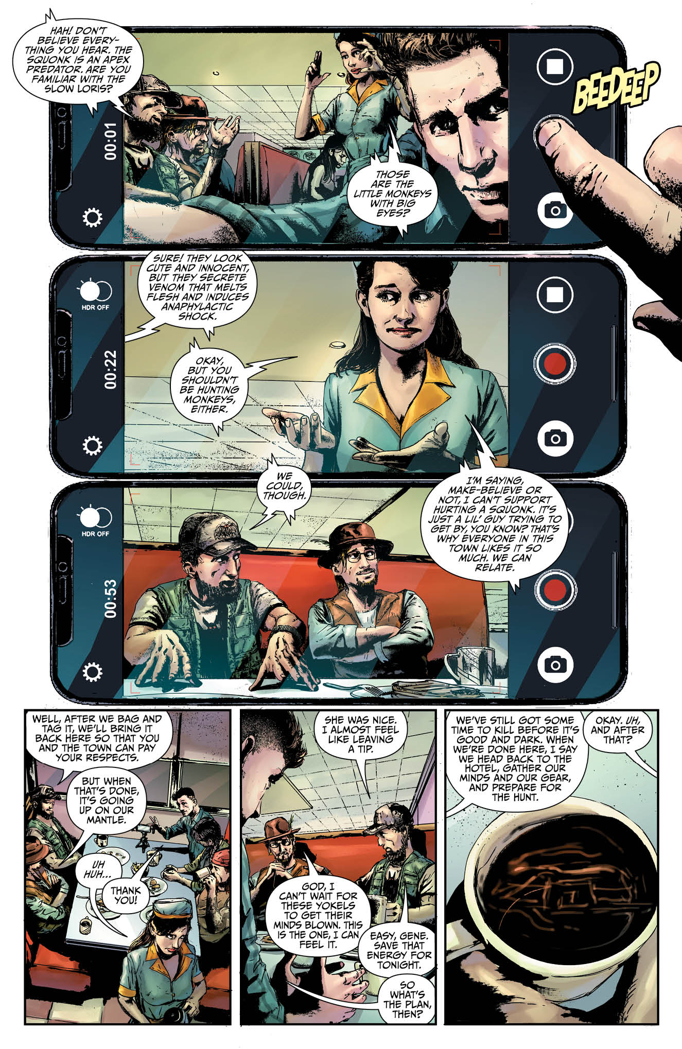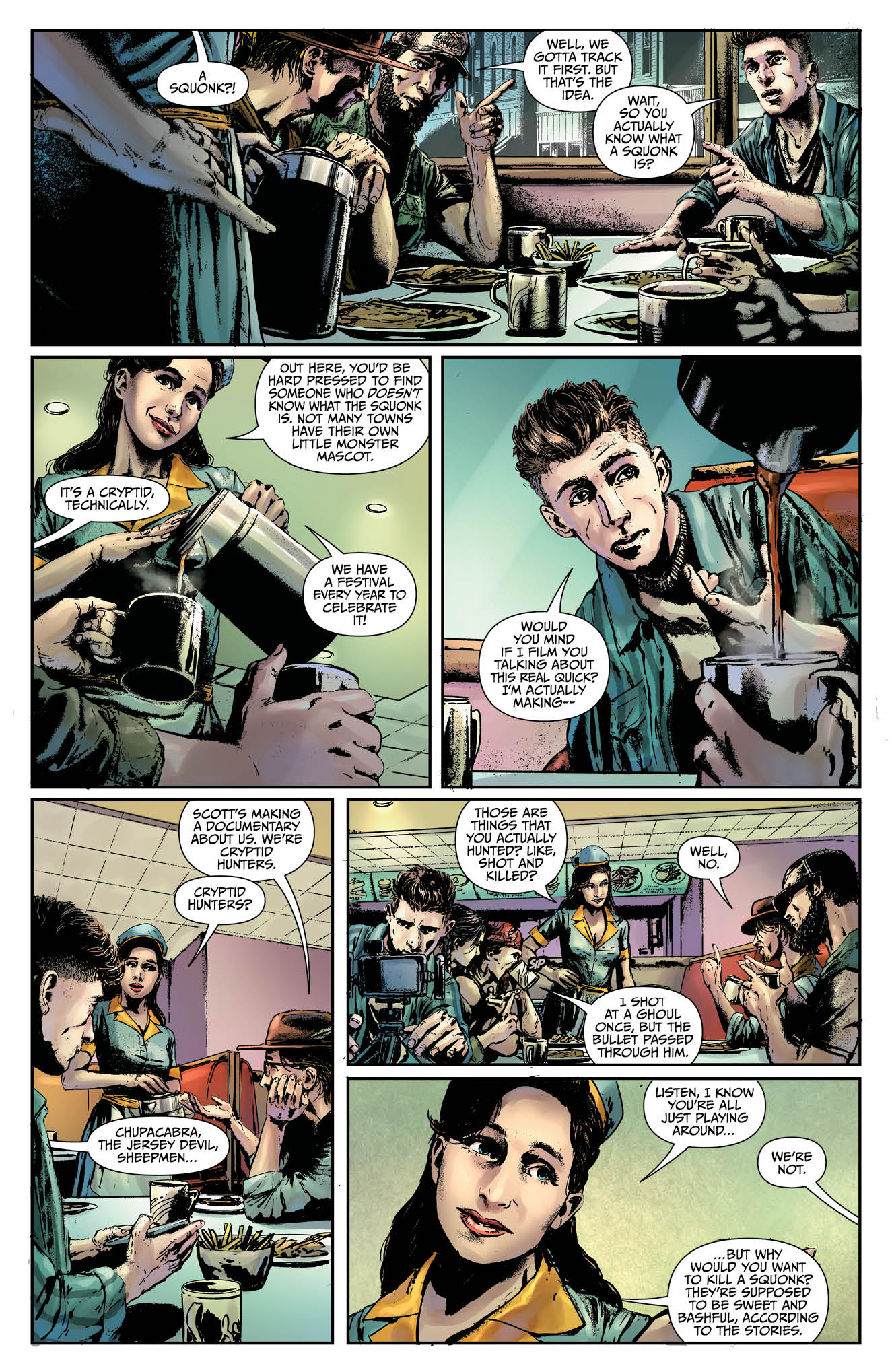Там выходит погоня за загонщиками. Некие «охотники за монстрами» ищут непонятное существо под названием «Хрюк». А по их следам едет беспринципный режиссёр-документалист, который хочет как-то особо хитро снять свой фильм и получить всю славу. На появившихся страницах он как раз общается в какой-то забегаловке с местным населением.
