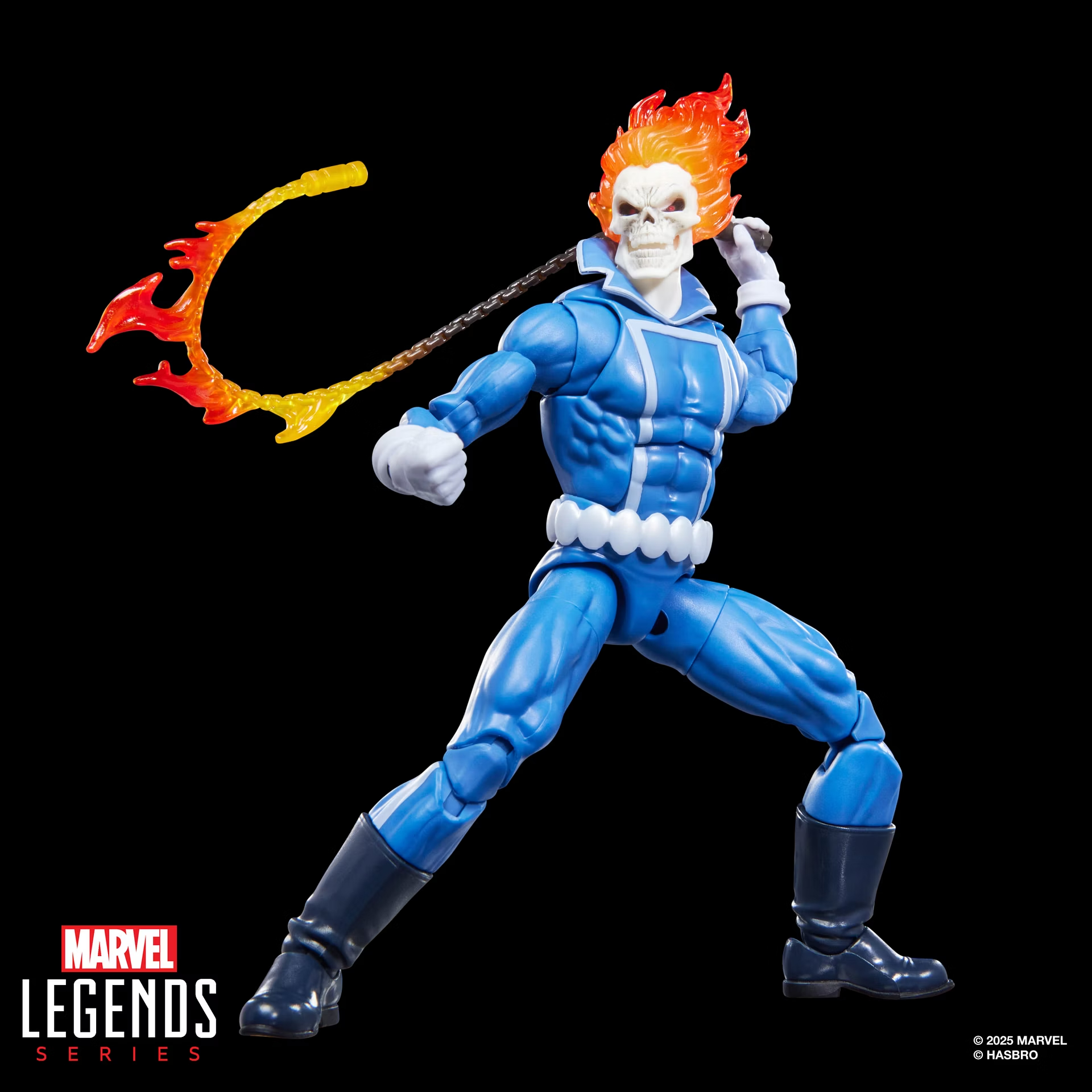 Компания Hasbro представила очередную игрушку из линейки Marvel Legends — на сей раз с Призрачным гонщиком в его классическом комиксном обличье из 1970-х. Как видно на промо-изображениях Дух Возмездия щеголяет синим комбинезоном, а его мотоцикл выполнен в красных тонах и дополнен съёмными языками пламени. Помимо этого, в комплект входят дополнительные детали байка, позволяющие собрать его разные версии, пылающая цепь и альтернативная голова, полностью охваченная огнём.