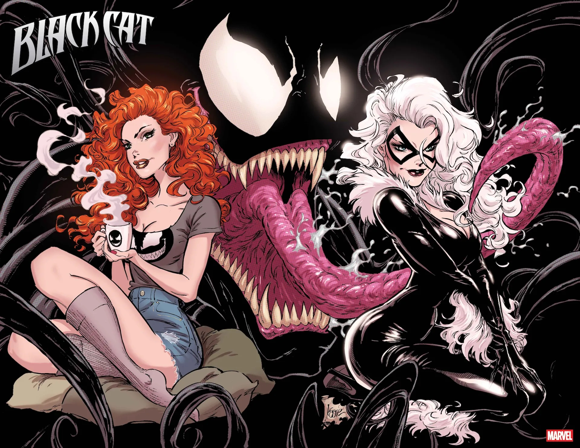 Вот только есть нюанс. Кошка пока не в курсе, что Мэри сейчас — новый Веном. Так что дружеская встреча рискует превратиться в весьма нервный тройничок. Восхитится ли Фелиция тем, что ЭмДжей стала супергероиней-симбиотом? Или присутствие такого чёрного напарника уничтожит доверие? Художник Каре Эндрюс представил эту троицу на эффектном варианте обложки-диптиха для седьмого и восьмого выпусков.