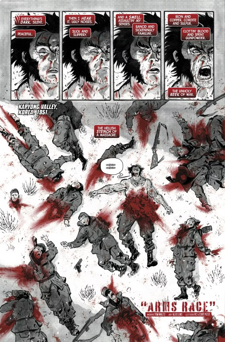 В номере читателей ждут три истории. В первой сценарист Том Уолтц (Wolverine: Blood Hunt) и художник Алекс Линс (Hellcat) покажут, как Логан служил в 1950-х годах. И нам раскроют неожиданную связь с одним из персонажей Marvel. Во втором рассказе Салладин Ахмед (восьмой том Wolverine) и Адам Куберт (Wolverine) отправят героя в грязный и опасный Таймс-сквер 1970-х, где ему предстоит выследить безумного серийного убийцу.