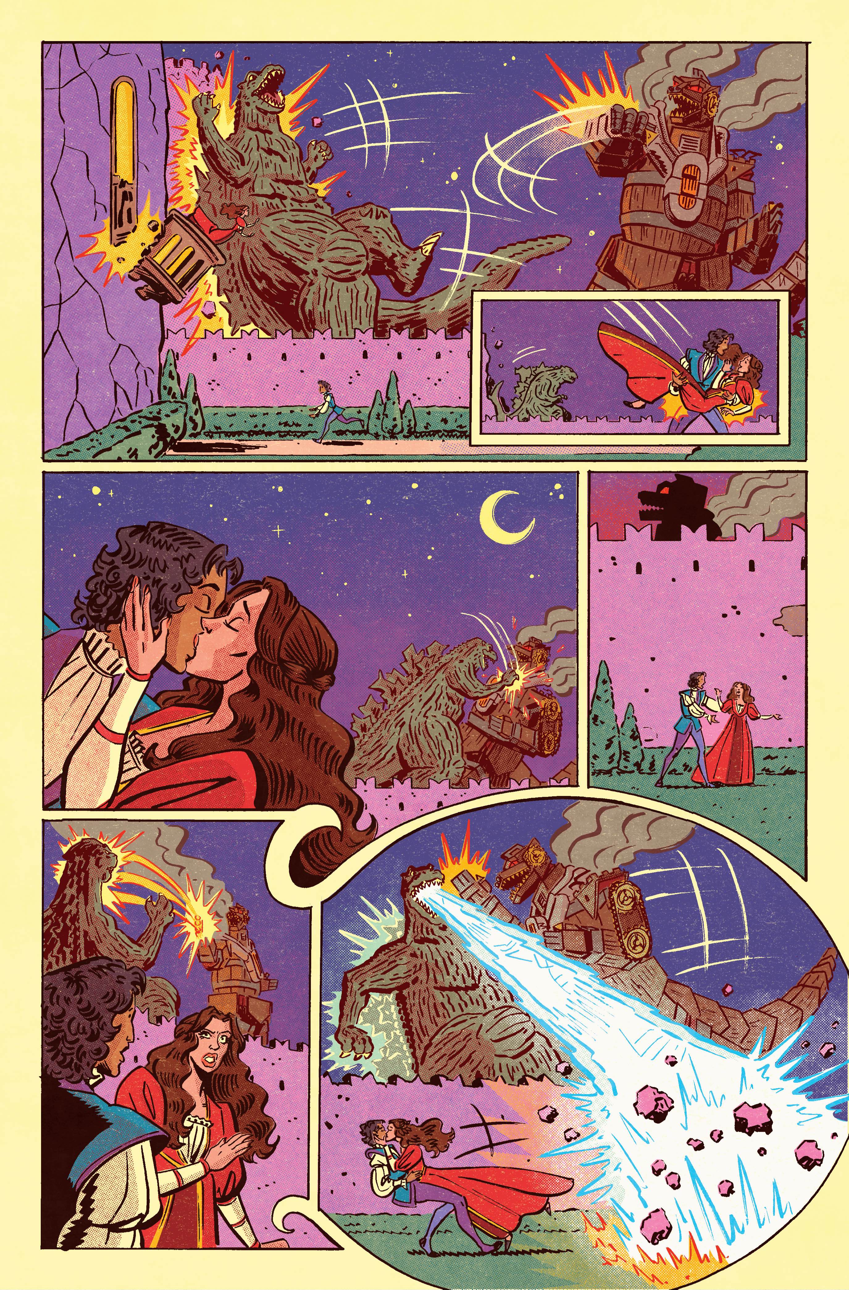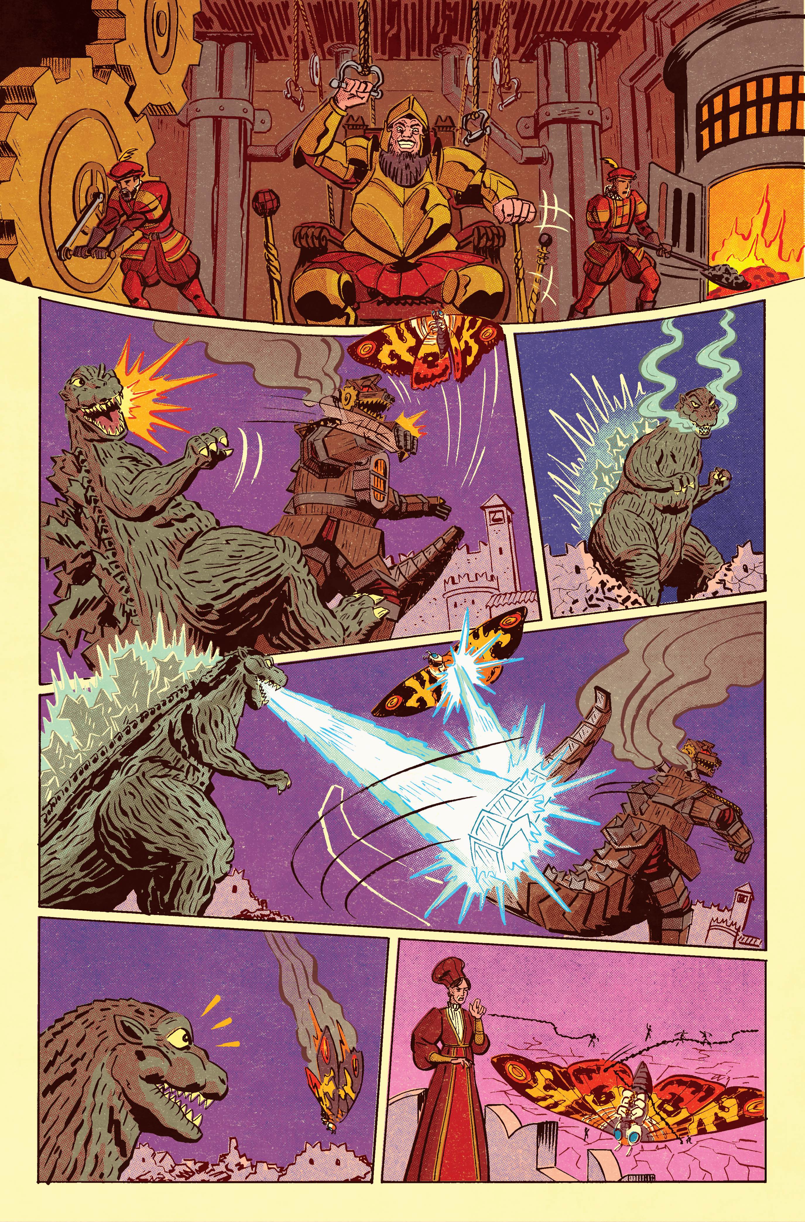 А ещё пошутил, что это, может быть, будет первый проект, написанный ямбическим пентаметром для пущей аутентичности. На представленных страницах пока нет слов, зато Годзилла строит шикарные рожи. Есть и… Робогодзилла, который, похоже, работает на угле.