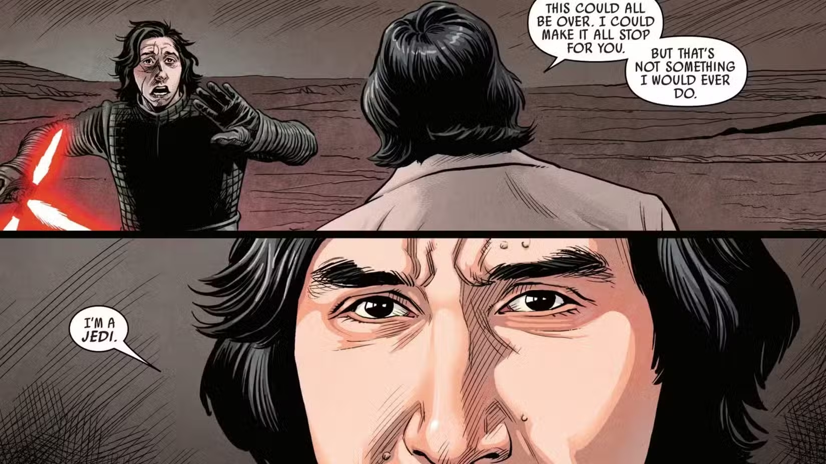В трилогии сиквелов «Звёздные войны» был совершенно иной финал для персонажа Адама Драйвера, где он нелепо пожертвовал собой. А в комиксах решили показать возможно альтернативную судьбу этой ушастой истерички.