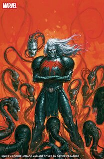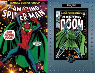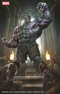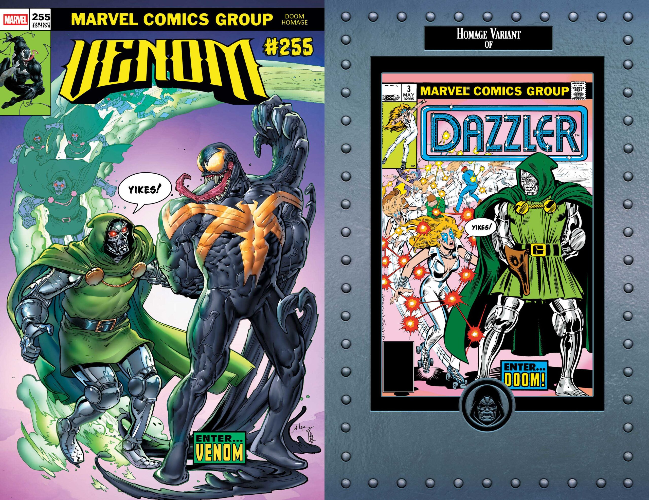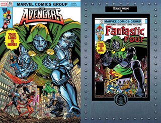 Само собой читатели увидят новые версии классических обложек с Думом — от оригинальных «Секретных войн» до различных противостояний с Фантастической четвёркой, Мстителями и Людьми Икс, а также более новые комиксы. Каждая обложка пытается передать невероятную ауру Виктора фон Дума, привнося смелые и современные читай повесточные штрихи в оригинальные иллюстрации и переосмысливая различных героев внутри его культовой брони. Классическая обложка, которой и отдают дань, будет изображена на задней стороне комикса. Понятно, что это сделано для молодёжи, чтобы они вообще понимали, о чём речь. Особенно передаёт невероятную ауру Дума обложка Storm, где Ороро Монро держит одной рукой поверженного Виктора за шкварник, а другой пафосно сжимает кубок. Всё как в оригинале, только наоборот. Как это вариант передаёт невероятную ауру Дума? Придумайте сами.