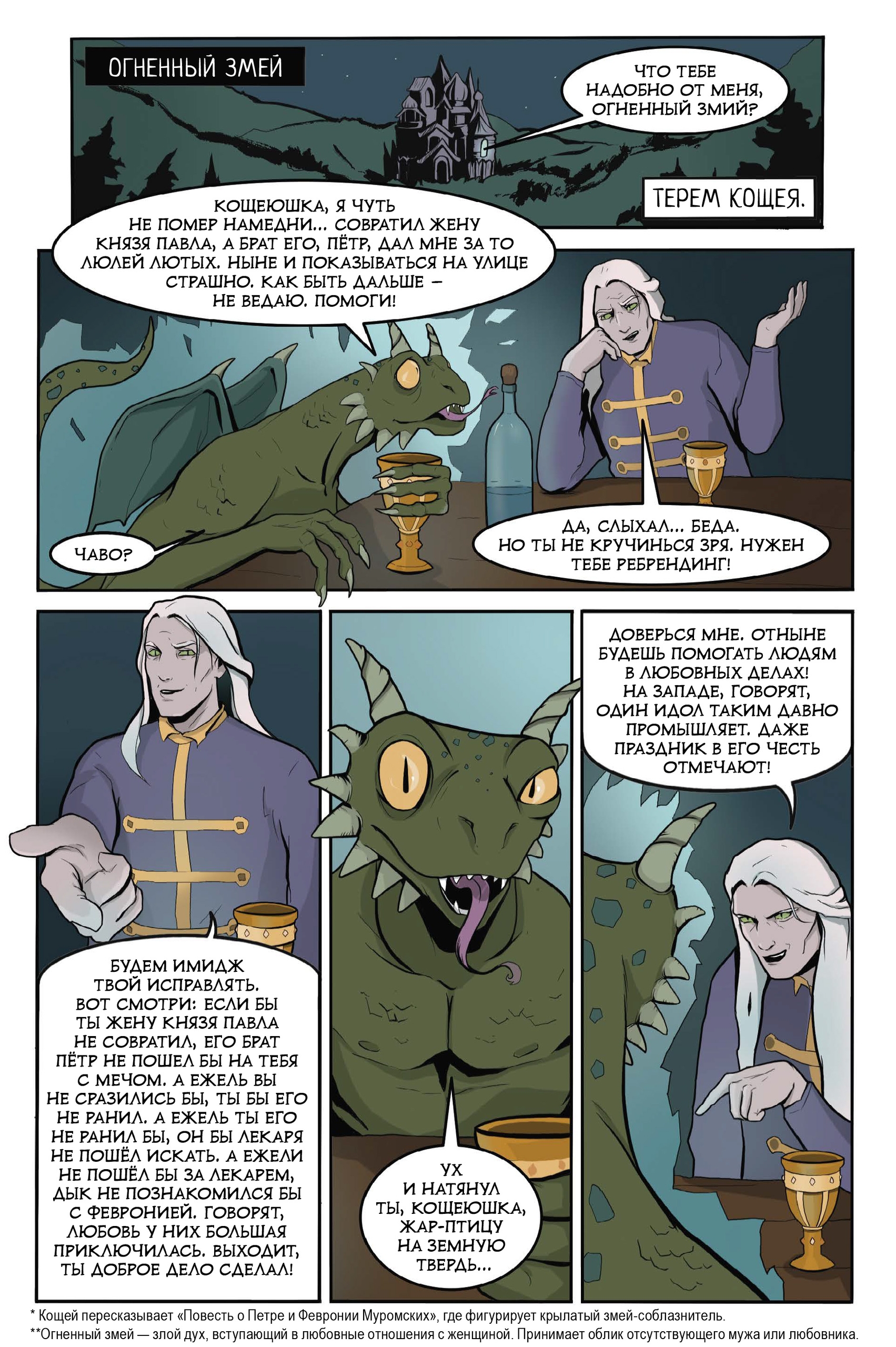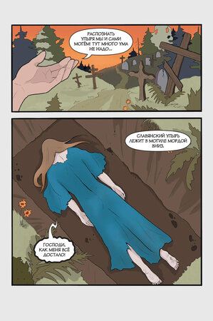Есть такая художница и сценаристка Инна Рейхард (она же «Серый Волче»). Специализируется на всевозможных забавных историях, связанных с нашей посконной русской нечистью. Ранее у неё выходил сборник под названием «Вот и сказочке конец». А сейчас вот анонсировали второй, который будет называться «Смех и Грех».