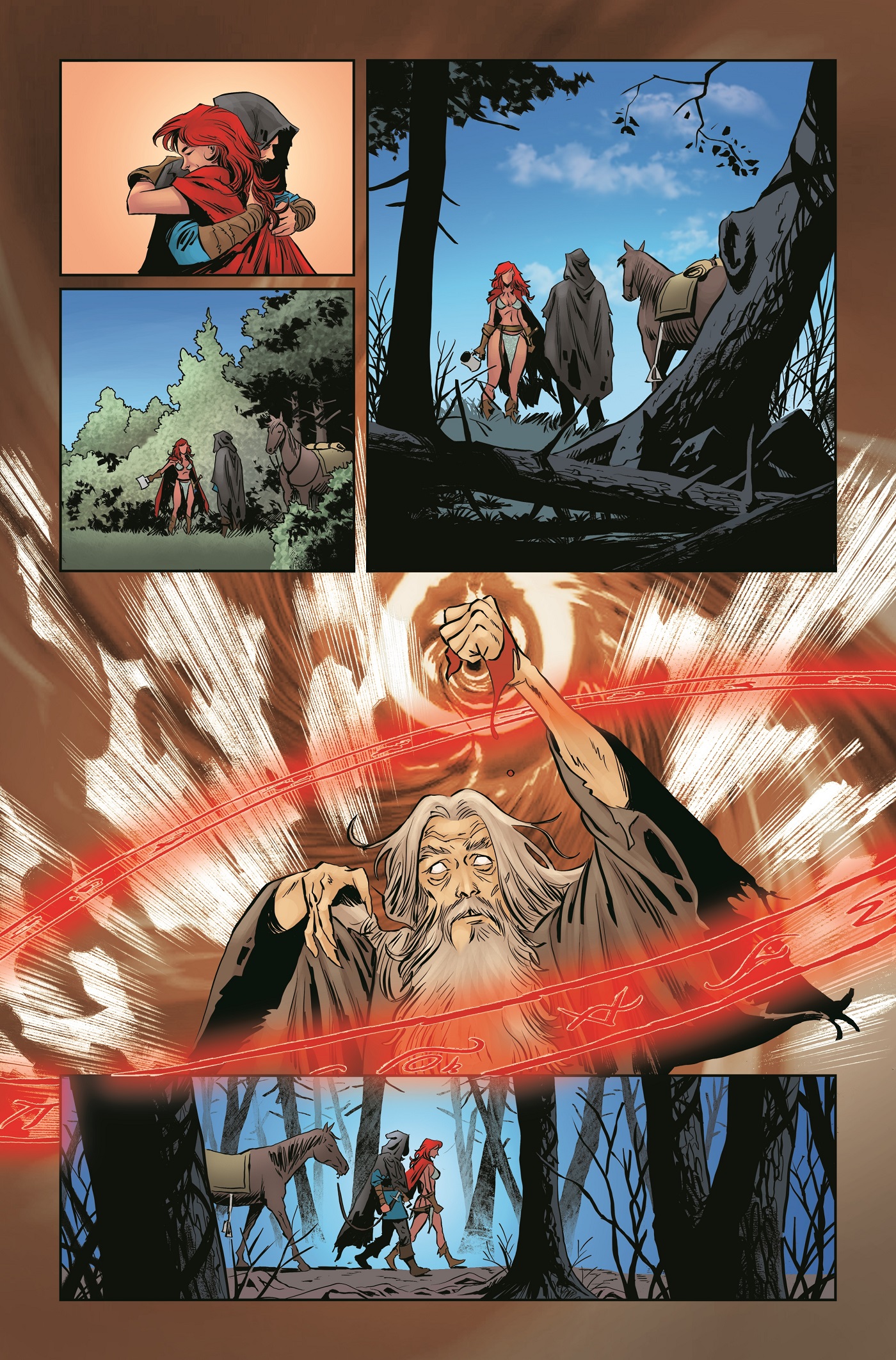 Я в восторге от путешествия в Хайборию для нового приключения Рыжей дьяволицы. В начале серии Соня просто пытается насладиться спокойной кружкой эля или тремя, когда мольба старого союзника о помощи втягивает её в революционный кризис на грани свержения коррумпированного королевства Кот.