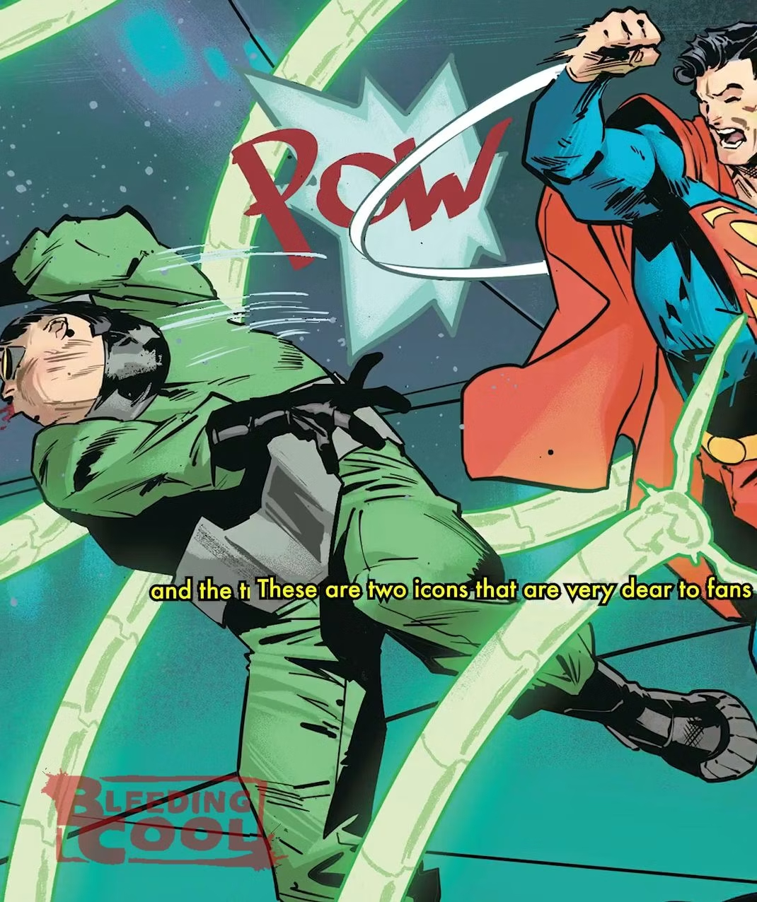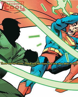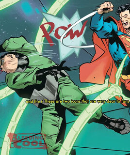 Из изображений следует, что криптонит играет ключевую роль в сюжете. Похоже, Доктор Осьминог — благодаря технологиям Брейниака — обзавёлся механическими руками из криптонита. Впрочем, сам Отто Октавиус остаётся обычным человеком, так что даже ослабленный Супермен вполне способен отправить его в нокаут одним ударом. На одном из кадров Супермен замотан в паутину — вероятно, она защищает его от огня, раз уж суперспособности не работают. И, кажется, Супермен спасает Паука из-под завалов в знаменитой сцене в духе Стива Дитко — в благодарность за собственное спасение. Что ж, взаимовыручка в мире супергероев — дело святое.