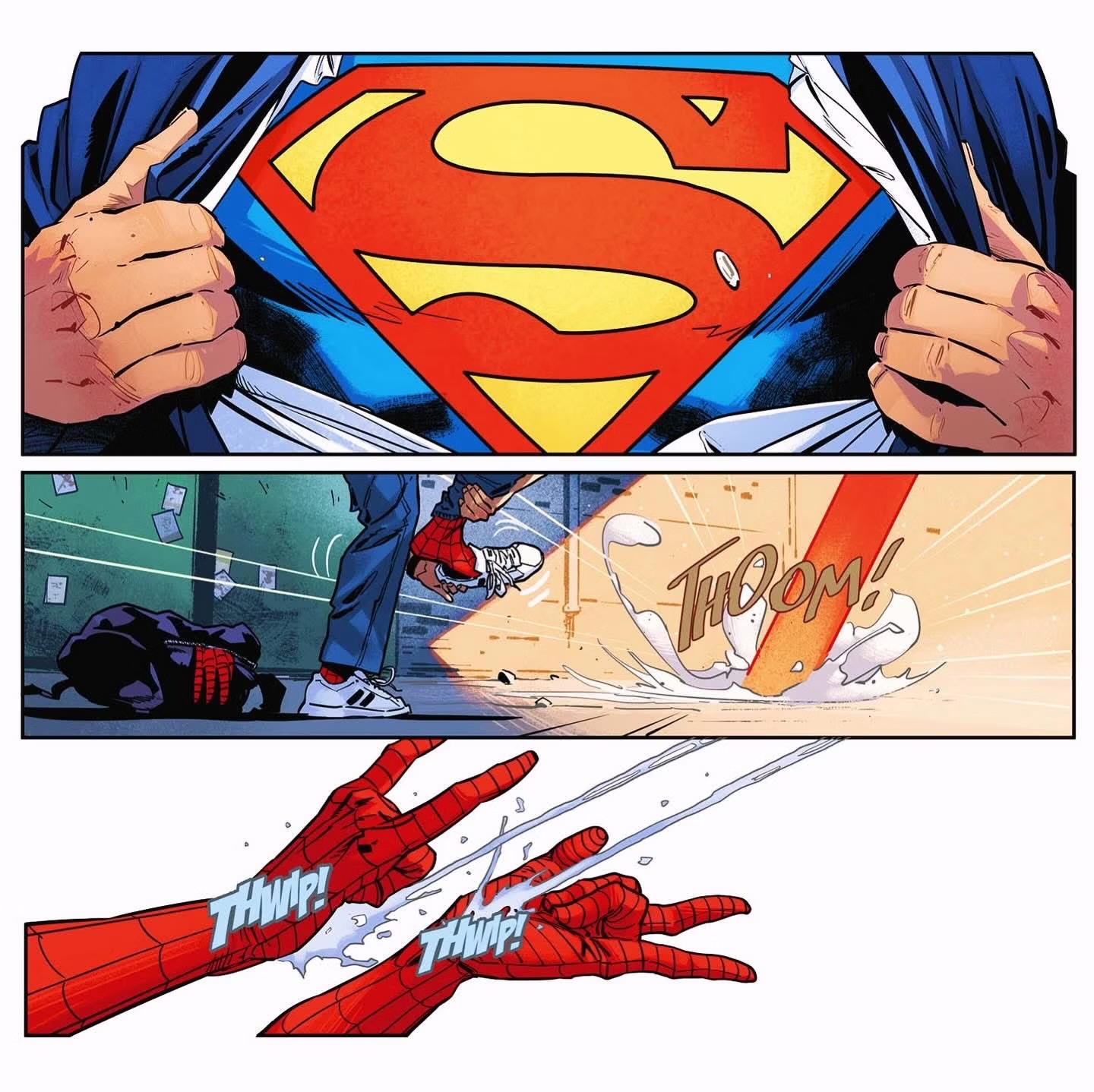 Как ранее писал сайт Bleeding Cool, в комиксе воспроизведут одну из классических сцен с Человеком-пауком — а затем она повторится и в апрельском «нашем ответе» All-New All-Spectacular Spider-Man/Superman от Marvel Comics. Издательство опубликовало несколько изображений из комикса, и по ним вполне можно догадаться, что нас ждёт.
