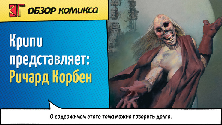 Не ждите разбора отдельных рассказов, как было в рецензиях на Creepy-томики Тота и Райтсона. С Ричардом Корбеном такой трюк не прокатит — очень уж плодовит был этот замечательный художник. Шутка ли: его томик сравним по размеру с остальными тремя, вместе взятыми! И количество, что показательно, ни капли не повредило качеству: это, наверное, лучший из четырёх сборников «Крипи» от «Альпаки», и посоревноваться с ним может разве что книжка Райтсона.