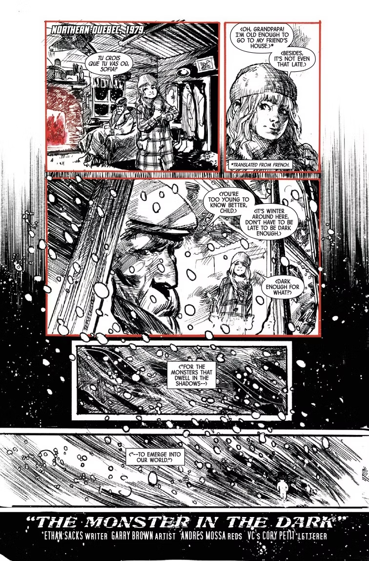 Итан Сакс (Old Man Hawkeye) вместе с Гарри Брауном (The Massive) сплели басню о давно минувших днях — о бугимене в канадской глуши, который может иметь связь с нашим Логаном. Художник Джузеппе Камунколи (Hellblazer) рассказал историю из тех времён, когда Логан жил под личиной подпольного контрабандиста по прозвищу Патч.