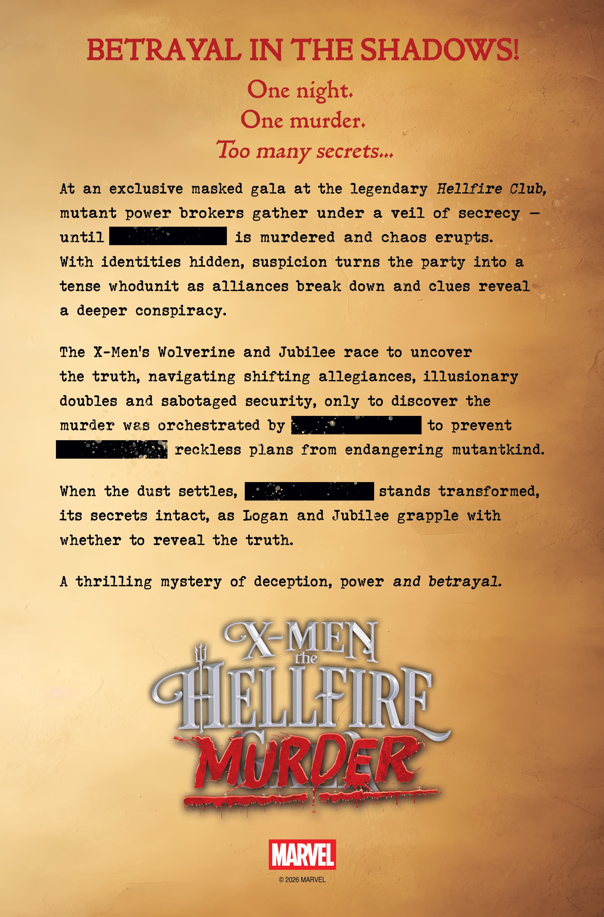 Когда влиятельного мутанта убивают на эксклюзивном маскараде, устроенном Себастьяном Шоу, то Росомахе и Джубили выпадает честь расследовать убийство в закрытой комнате — преступление, последствия которого затронут всех мутантов. Все — подозреваемые. И вечеринка ещё далеко не закончилась.