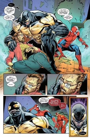 В Venom #256 от Эла Юинга (The Immortal Hulk, Jennifer Blood) и Карлоса Гомеза (Historica) всеми «любимого» дядьку убивает текущий злодей-симбионт по кличке Мучитель. Причём он его просто зарезал кухонным ножом.