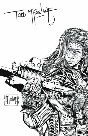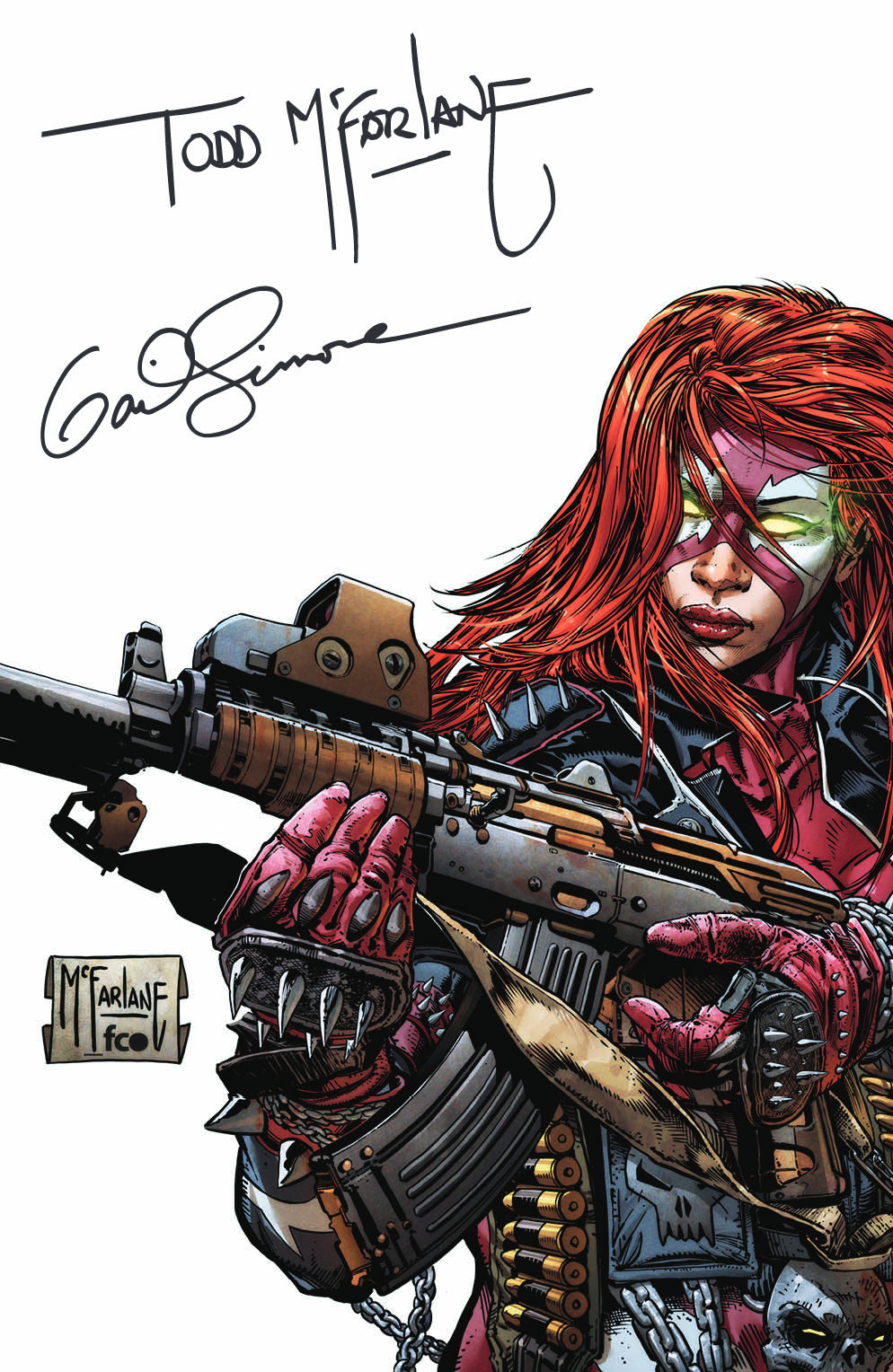 Обложка Макфарлейна выйдет в нескольких вариантах. Во-первых, обычная. Во-вторых, в «чистом» виде без логотипов, надписей и текста. В-третьих, чёрно-белый рисунок с его автографом. В-четвёртых, в частичном цвете с подписями Тода и Симон. Да, умеют люди продавать одно и то же по нескольку раз.